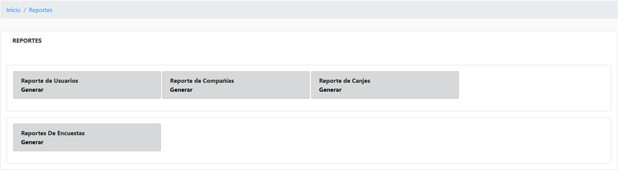- Reportes: Se pueden generar 4 tipos de reportes según las necesidades. El formato del reporte generado es “.xls”.