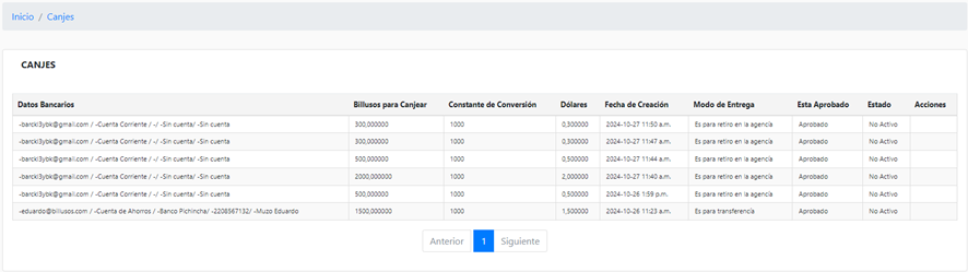- Solicitudes de Canjes: En esta ventana es posible visualizar, aprobar, rechazar y eliminar la solicitud de canje de un panelista.