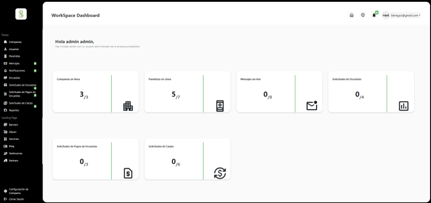 Al iniciar sesión con una cuenta de administrador de Billusos se muestra la ventana principal del espacio de trabajo, la cual contiene las tareas por realizar del administrador.