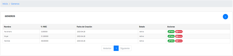 - Género: Dentro de la ventana “Género” se pueden añadir nuevos géneros a la segmentación o modificar y eliminar los ya existentes.