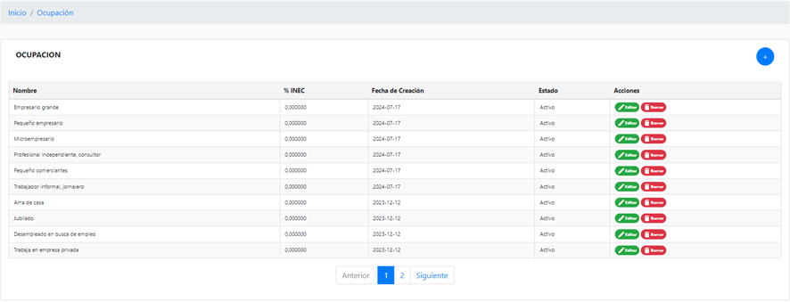 - Ocupación: Dentro de la ventana “Ocupación” se pueden añadir nuevas ocupaciones a la segmentación o modificar y eliminar las ya existentes.