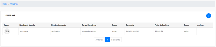 - Usuarios: En esta ventana es posible crear nuevos usuarios seleccionando el botón “+”, según dos categorías: “Owners” y “Employees”. Los usuarios “Owners” tendrán todos los privilegios de administrador.